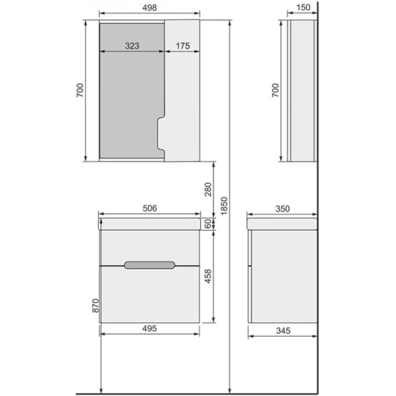 Комплект мебели белый 50 см Jorno Moduo Slim Mod.01.50/P/W + P-UM-MOD5OSL/1 + Mod.03.50/W