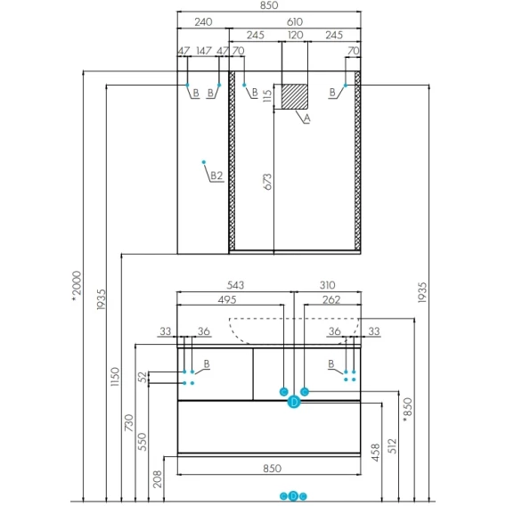 Комплект мебели дуб кантри/антрацит 85 см Акватон Терра 1A247201TEKA0 + 732700B000 + 1A247302TEDY0