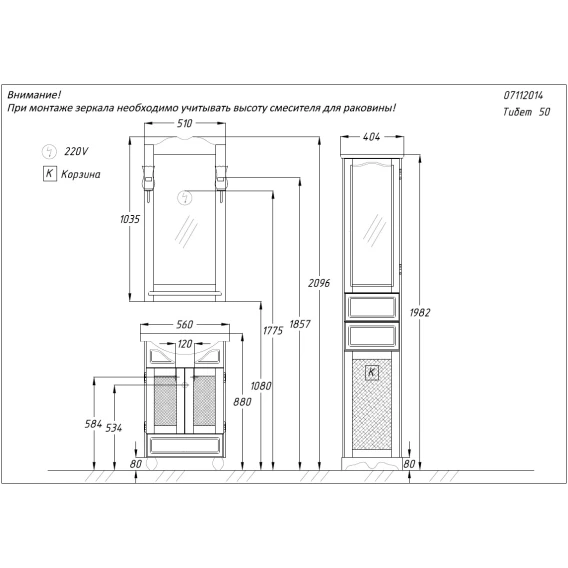 Комплект мебели орех антикварный 56 см Opadiris Тибет