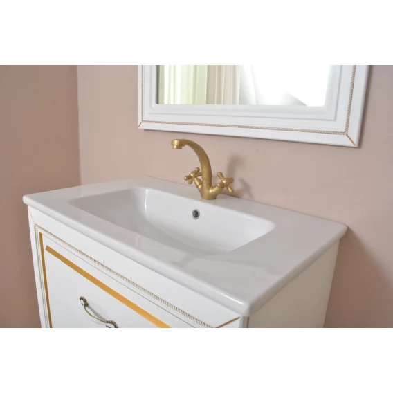 Зеркало 78x90 см белый матовый золотая патина Atoll Валери