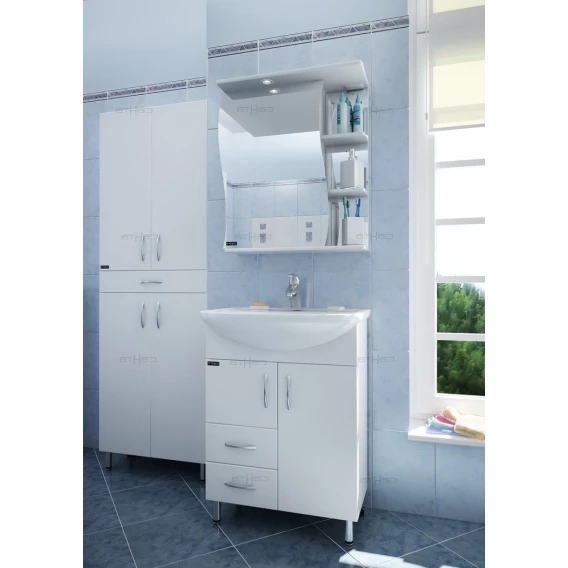 Зеркальный шкаф 60x70 см белый глянец Санта Волна 101015