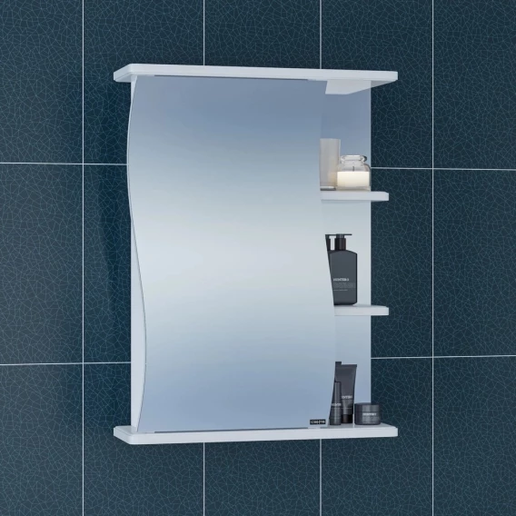 Зеркальный шкаф 55x70 см белый глянец Санта Волна 101009