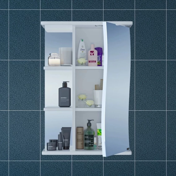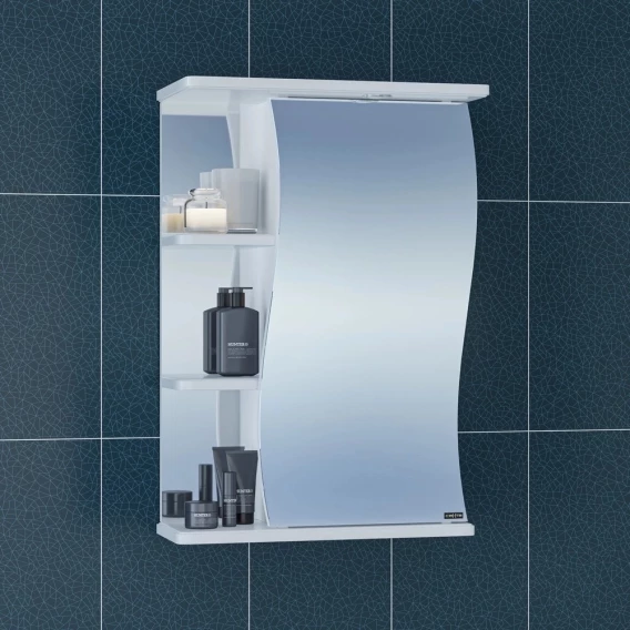 Зеркальный шкаф 60x70 см белый глянец Санта Волна 101016