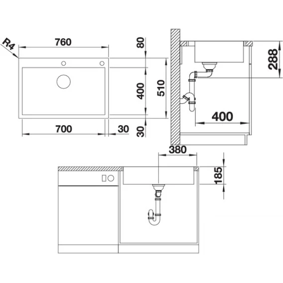 Кухонная мойка Blanco Zerox 700-IF/A InFino нержавеющая сталь 523102