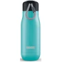 Двойные вакуумные стенкиВакуум и толстые стенки из нержавеющей стали поддерживают температуру горячих напитков до 10, а холодных – до 30 часов, поэтому любимые напитки всегда будут доступны в течение дня. При этом бутылку можно спокойно держать в руках без риска обжечься.Гигиеничное горлышкоУзкое горлышко создано специально для питья, вам не потребуются дополнительные стаканы или емкости. Гладкая полированная поверхность легко очищается за считанные секунды и не накапливает на себе бактерии и грязь благодаря тому, что резьба для крышки спрятана внутри. Даже если вы находитесь на активном отдыхе или занимаетесь спортом, ваша бутылка всегда остается чистой и гигиеничной.Паракорд для переноскиШнур на крышке бутылки называется «паракордом» и позволяет вам брать её с собой, куда бы вы ни направлялись: держите её в руках, несите за ремешок или же прикрепите к снаряжению. Шнур легко вынимается при необходимости, просто потяните защитную крышку вверх.Нержавеющая стальВысокое качество нержавеющей стали 18/8 делает термобутылку особенно прочной: она устойчива к коррозии, не разрушается и не впитывает запахи. Бутылка будет служить долго и не потребует замены деталей. Используемая сталь полностью пригодна для пищевых продуктов, не содержит фталатов и бисфенола-А.Открывается одним движениемЧтобы закрутить или открутить крышку, достаточно всего одного оборота, что очень удобно, если вы на ходу или за рулем. Крышка с силиконовой вставкой полностью герметична, поэтому бутылку можно смело убрать в рюкзак, чемодан или сумку, не боясь, что ее содержимое прольется.Стильный дизайнПривлекательный внешний вид, яркие цвета и качественные материалы делают эту термобутылку идеальным компаньоном для активных и следящих за своим здоровьем людей. Она подчеркнет ваш имидж и добавит ему ярких акцентов. Берите её с собой на прогулки, в спортзал и в любое путешествие, не боясь, что ваши напитки его не выдержат.Объем термобутылки – 350 мл. Моется вручную.