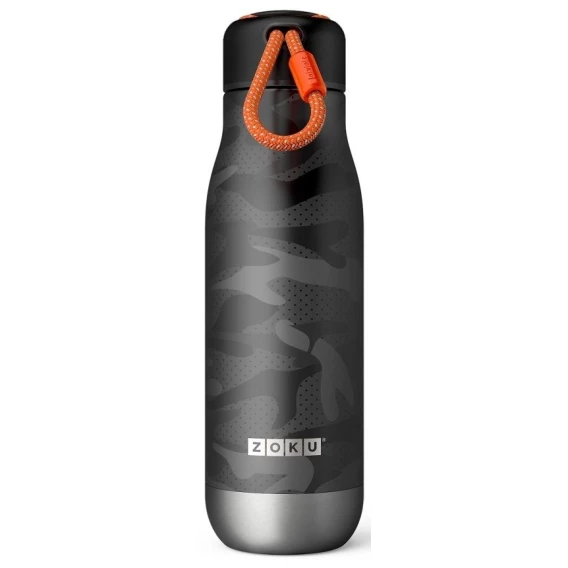 Двойные вакуумные стенкиВакуум и толстые стенки из нержавеющей стали поддерживают температуру горячих напитков до 12, а холодных – до 40 часов, поэтому любимые напитки всегда будут доступны в течение дня. При этом бутылку можно спокойно держать в руках без риска обжечься.Гигиеничное горлышкоУзкое горлышко создано специально для питья, вам не потребуются дополнительные стаканы или емкости. Гладкая полированная поверхность легко очищается за считанные секунды и не накапливает на себе бактерии и грязь благодаря тому, что резьба для крышки спрятана внутри. Даже если вы находитесь на активном отдыхе или занимаетесь спортом, ваша бутылка всегда остается чистой и гигиеничной.Паракорд для переноскиШнур на крышке бутылки называется «паракордом» и позволяет вам брать её с собой, куда бы вы ни направлялись: держите её в руках, несите за ремешок или же прикрепите к снаряжению. Шнур легко вынимается при необходимости, просто потяните защитную крышку вверх.Нержавеющая стальВысокое качество нержавеющей стали 18/8 делает термобутылку особенно прочной: она устойчива к коррозии, не разрушается и не впитывает запахи. Бутылка будет служить долго и не потребует замены деталей. Используемая сталь полностью пригодна для пищевых продуктов, не содержит фталатов и бисфенола-А.Открывается одним движениемЧтобы закрутить или открутить крышку, достаточно всего одного оборота, что очень удобно, если вы на ходу или за рулем. Крышка с силиконовой вставкой полностью герметична, поэтому бутылку можно смело убрать в рюкзак, чемодан или сумку, не боясь, что ее содержимое прольется.Стильный дизайнПривлекательный внешний вид, яркие цвета и качественные материалы делают эту термобутылку идеальным компаньоном для активных и следящих за своим здоровьем людей. Она подчеркнет ваш имидж и добавит ему ярких акцентов. Берите её с собой на прогулки, в спортзал и в любое путешествие, не боясь, что ваши напитки его не выдержат.Объем термобутылки – 500 мл. Моется вручную.В связи с технологическими особенностями в нанесении принта, стыковочные швы не являются браком.