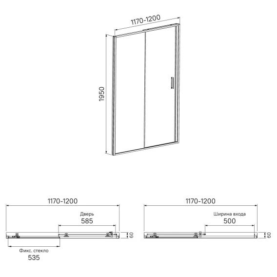 Душевая дверь 120 см IDDIS Zodiac ZOD6CS2i69 прозрачное