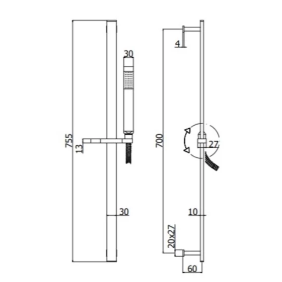 Крепление, Душевой шланг, Душевая лейка, Держатель для душевой лейки, Штанга душевая