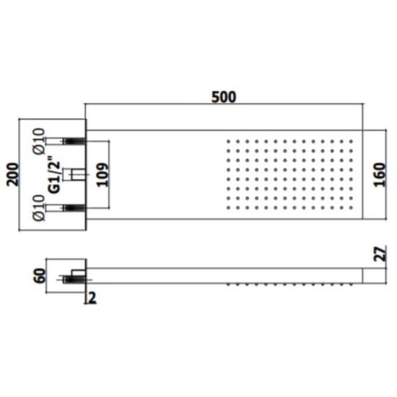 Верхний душ 500x160 мм Paffoni Free ZSOF098CR
