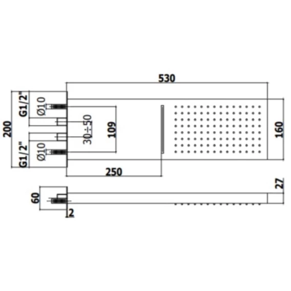 Верхний душ 530x160 мм Paffoni Cascade ZSOF099CR