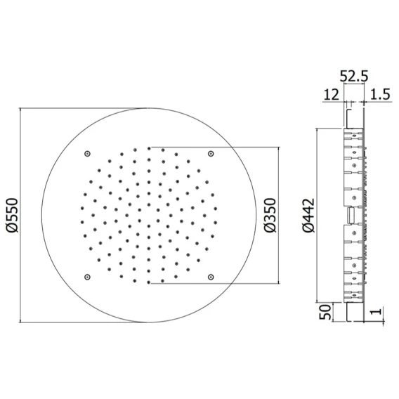 Диаметр верхнего душа 55 см